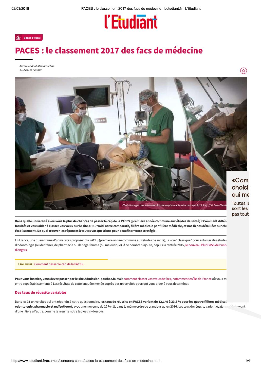 Classements Facs de medecine 2017