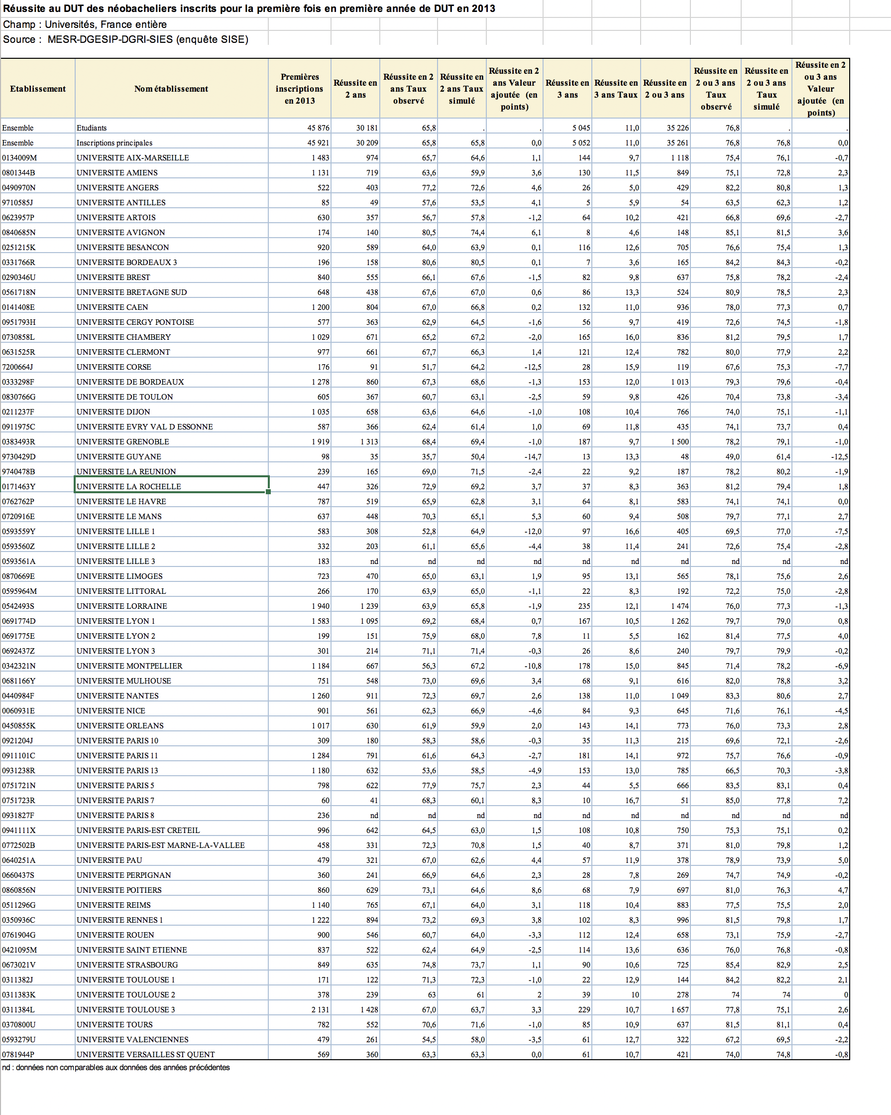 IUT 2015 tx de réussite et valeur ajoutée
