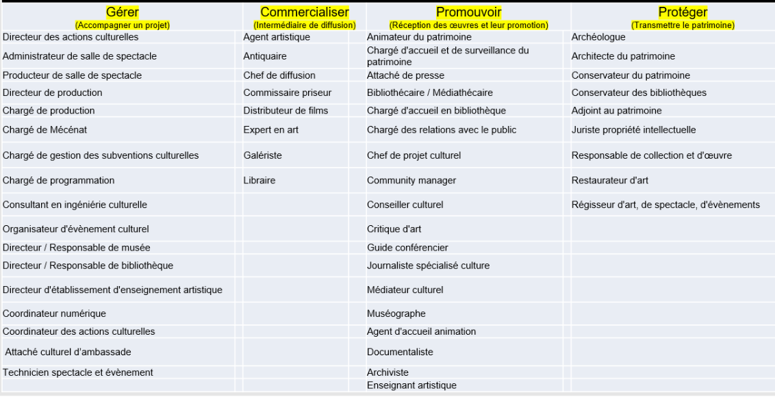 métiers culture FP